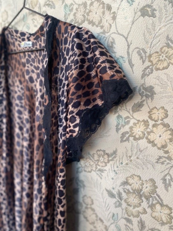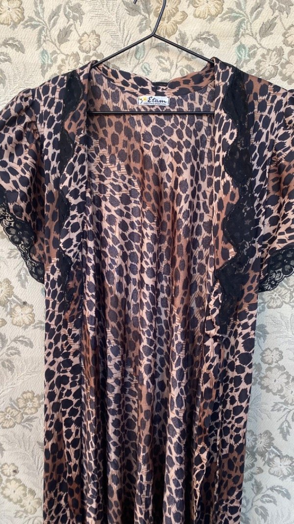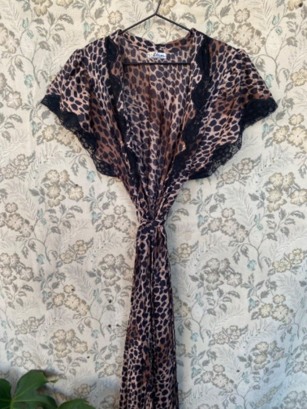 Déshabillé con hombreras, tiene detalles con puntilla en el cuello y las mangas. Trae un lazo para ajustar a la cintura y también unas tiritas por dentro para cerrarla, asi que también se puede utilizar como vestido. Tiene un bolsillo