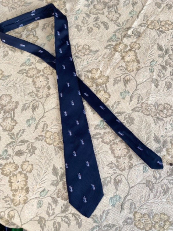 Corbata de satén, bordada de color azul