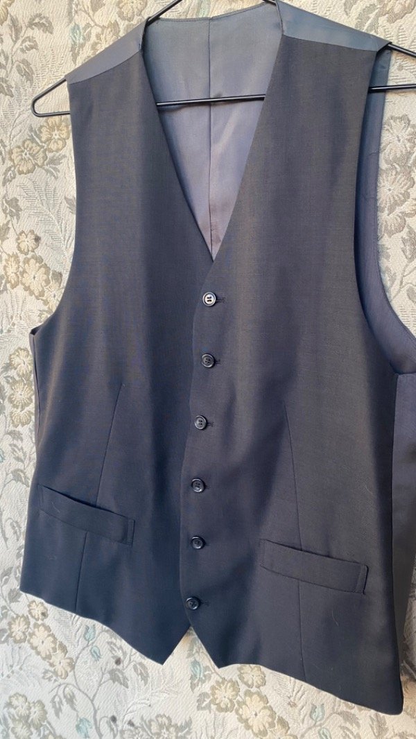 Chaleco de vestir con bolsillos y tiene para ajustar atrás